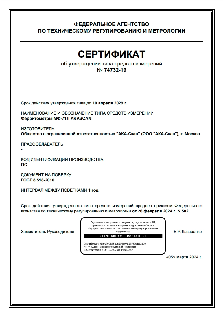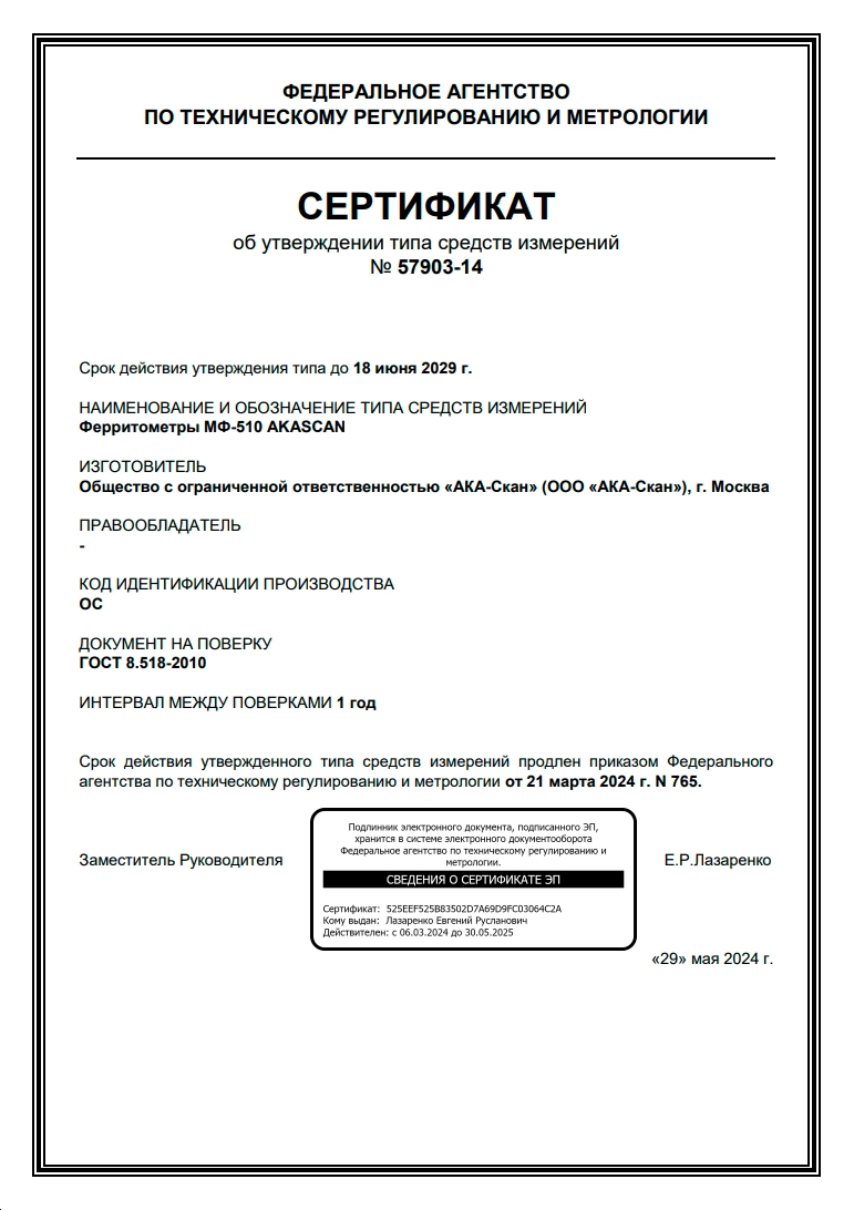 С 2011 года компания АКА-Скан успешно провела испытания в органах Росстандарта более 15 типов средств измерений собственного производства и зарегистрировала в ФИПС 7 товарных знаков.